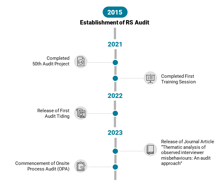 RS Audit is a not-for-profit market research audit unit under RySense Limited, which is set up by the Ministry of Digital Development and Information (MDDI). Our primary goal is to conduct independent quality checks on vendors commissioned by public sector agencies to carry out data collection for designated projects.